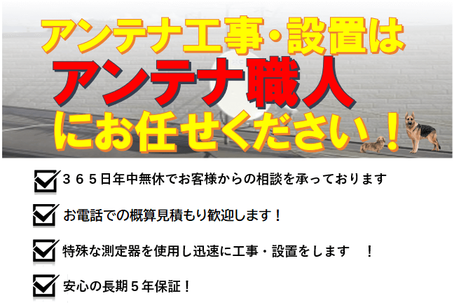 お気軽にお問い合わせください。アンテナ職人 TEL 090-3665-9348 営業時間 08:00~21:00 (年中無休)